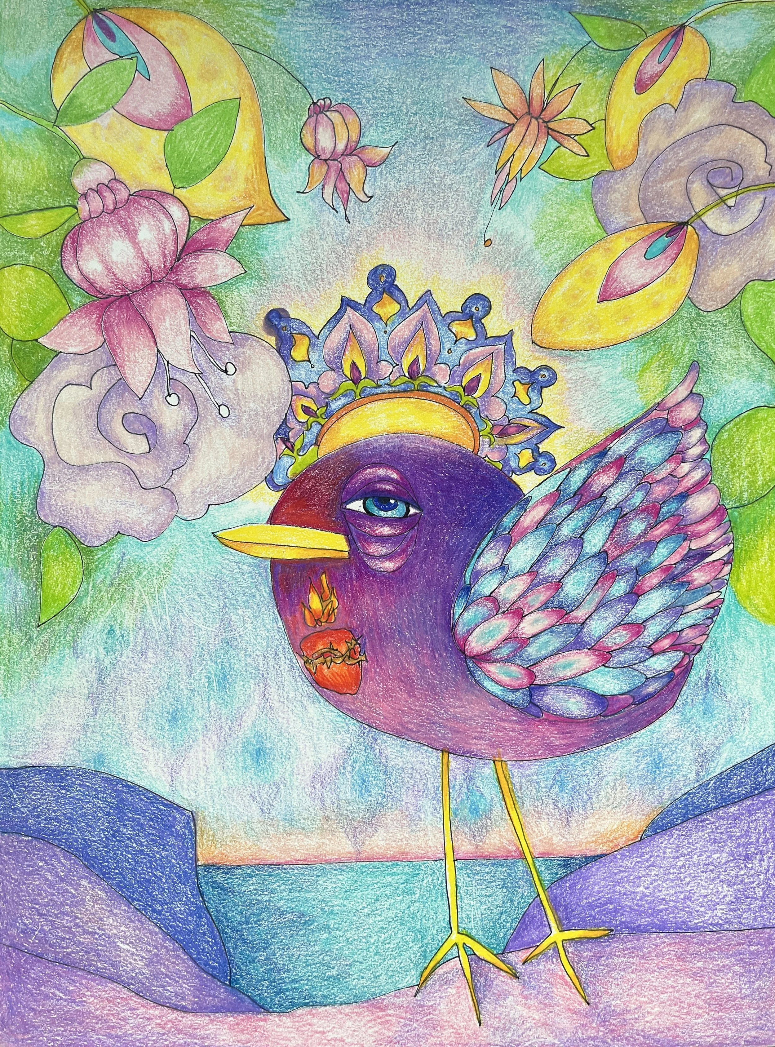 Purple bird colored pencil2020.jpg